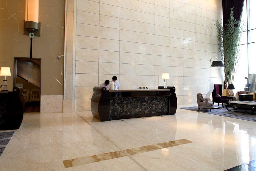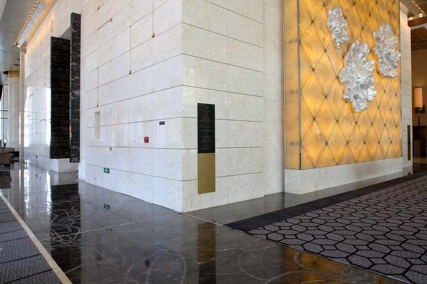 項(xiàng)目概述:北京萬(wàn)達(dá)索菲特大酒店傲居備受矚目的商業(yè)領(lǐng)地CBD核心區(qū),以白金五星級(jí)標(biāo)準(zhǔn)打造。酒店延續(xù)索菲特酒店的法式風(fēng)情,結(jié)合極富北京地域特色的裝飾設(shè)計(jì),被第四屆中國(guó)酒店星光獎(jiǎng)評(píng)為“中國(guó)最佳頂級(jí)奢華酒店”。酒店內(nèi)部裝飾奢華、高雅,多種高端石材的精妙運(yùn)用,大大提升酒店的品位和檔次。其中,天然石材金蜘蛛和黑金花的完美搭配,堪稱(chēng)室內(nèi)設(shè)計(jì)經(jīng)典之作!